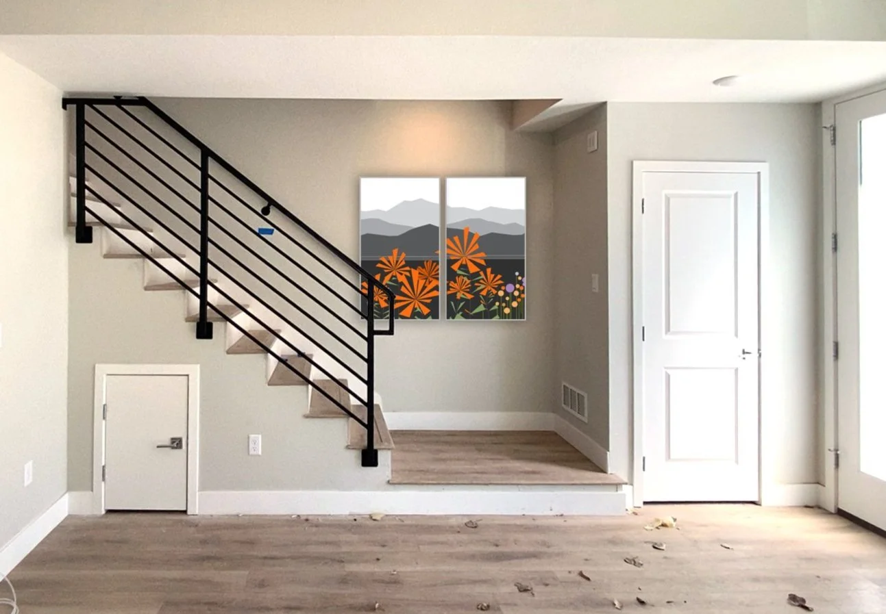 Designed for the living room of the townhome, this diptych serves as both a focal point and a natural extension of the surrounding environment. The vivid yet refined palette brings a sense of calm and wonder, inviting viewers to feel connected to the landscapes just beyond their doors. More than just artwork, VISTA – LupinVISTA: CO transforms the space into a reflection of Colorado’s beauty, creating a lasting sense of place.