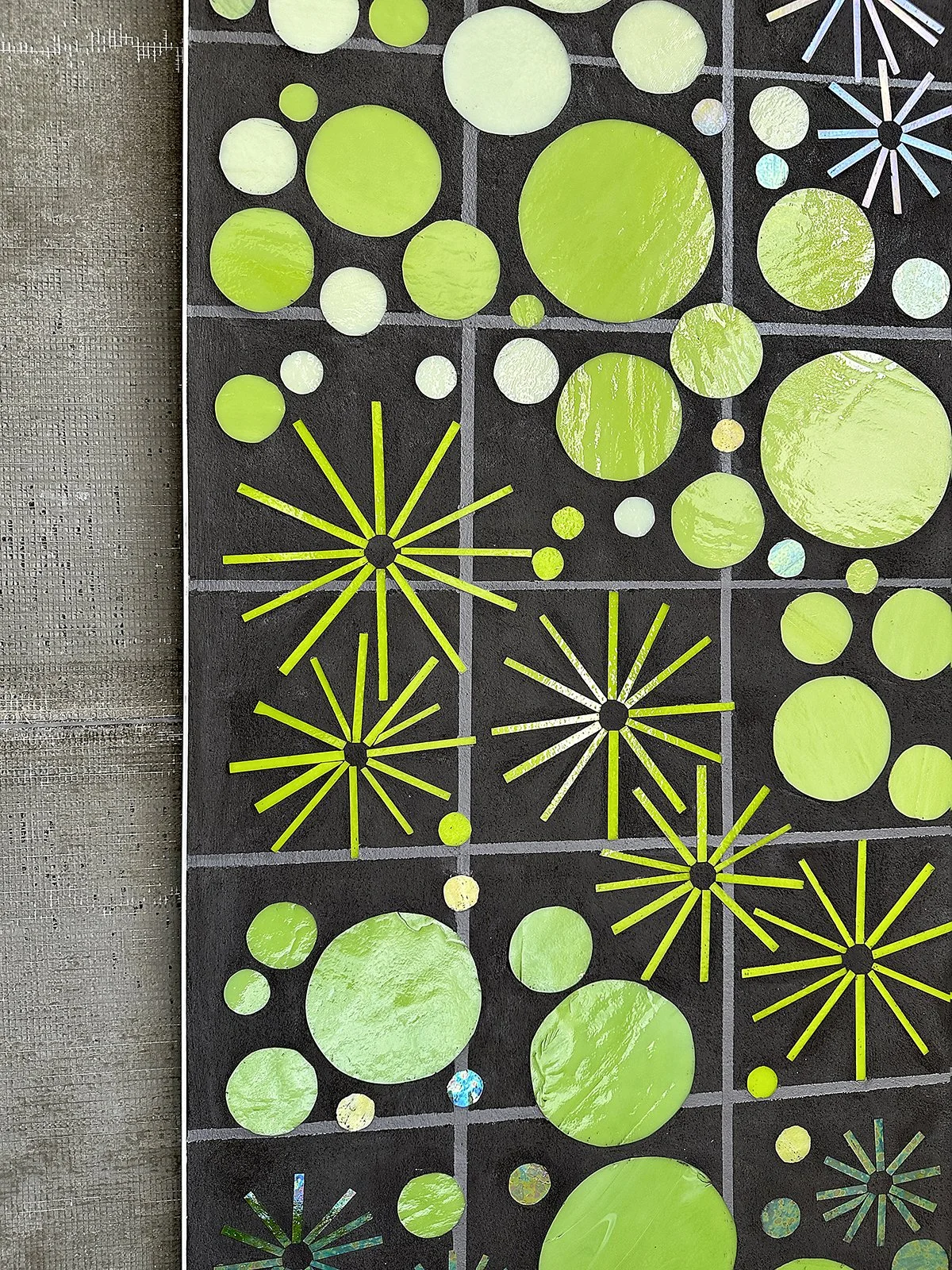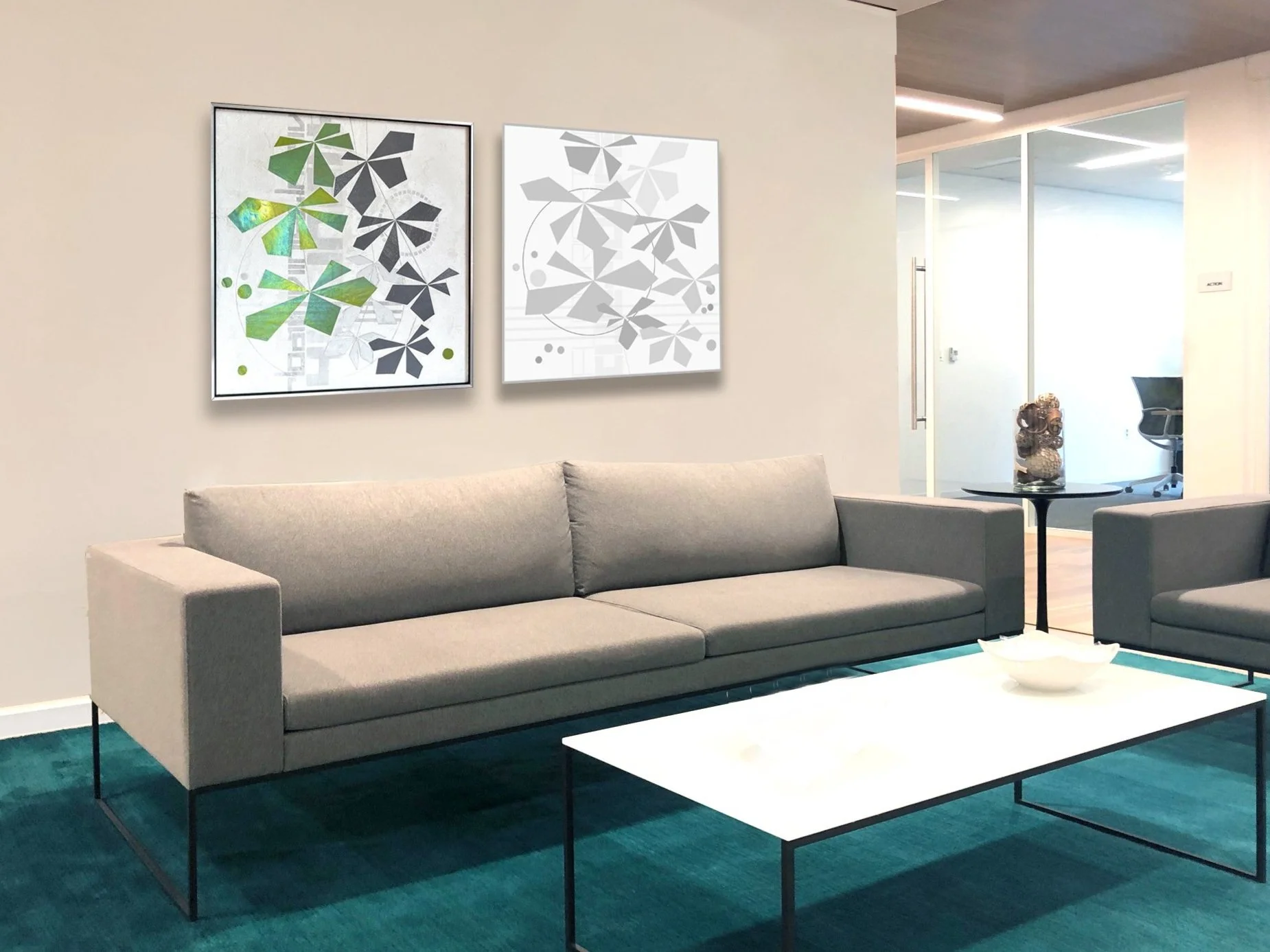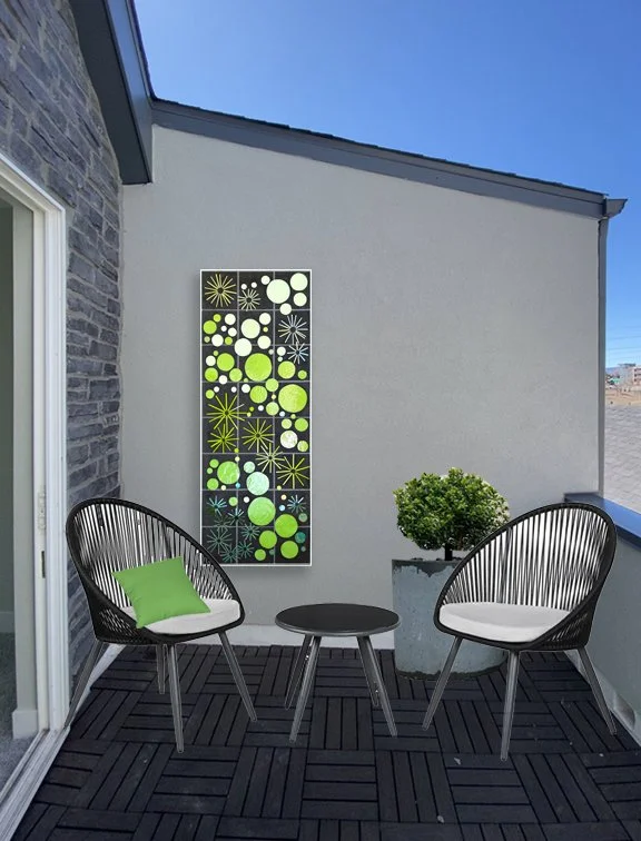 This diptych, created for a new construction townhome in Colorado, captures the beauty of the region’s wildflowers and mountains through shimmering glass. Measuring 44” x 24” each, the panels provide a striking yet intimate connection to the natural landscape just minutes away from Denver.